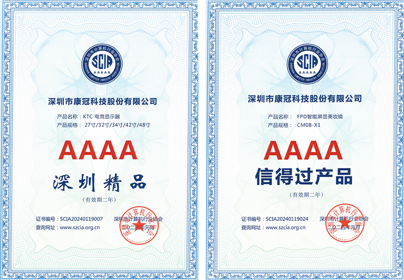 In the event, KTC Technology was awarded the "5A Shenzhen Boutique Enterprise". Additionally, their product "KTC e-sports display" received the "4A Shenzhen Boutique" award, while their "FPD smart screen display beauty mirror" was recognized as a "4A trustworthy product" and received other prestigious accolades.