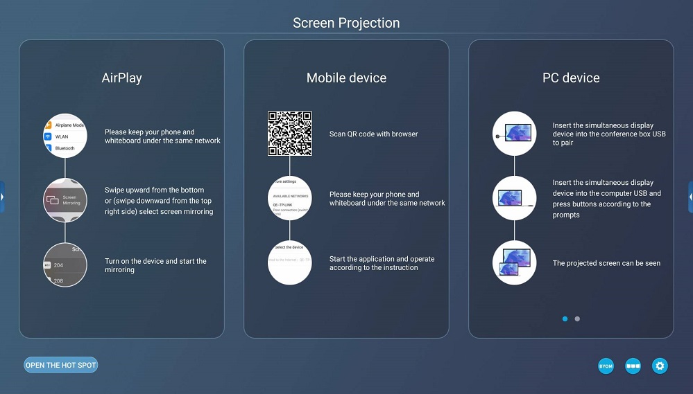 The IFPD/LFD can synchronize the screen with up to 256 personal devices, so that the screen mirrored to IFPD/LFD can synchronized to connected personal devices.