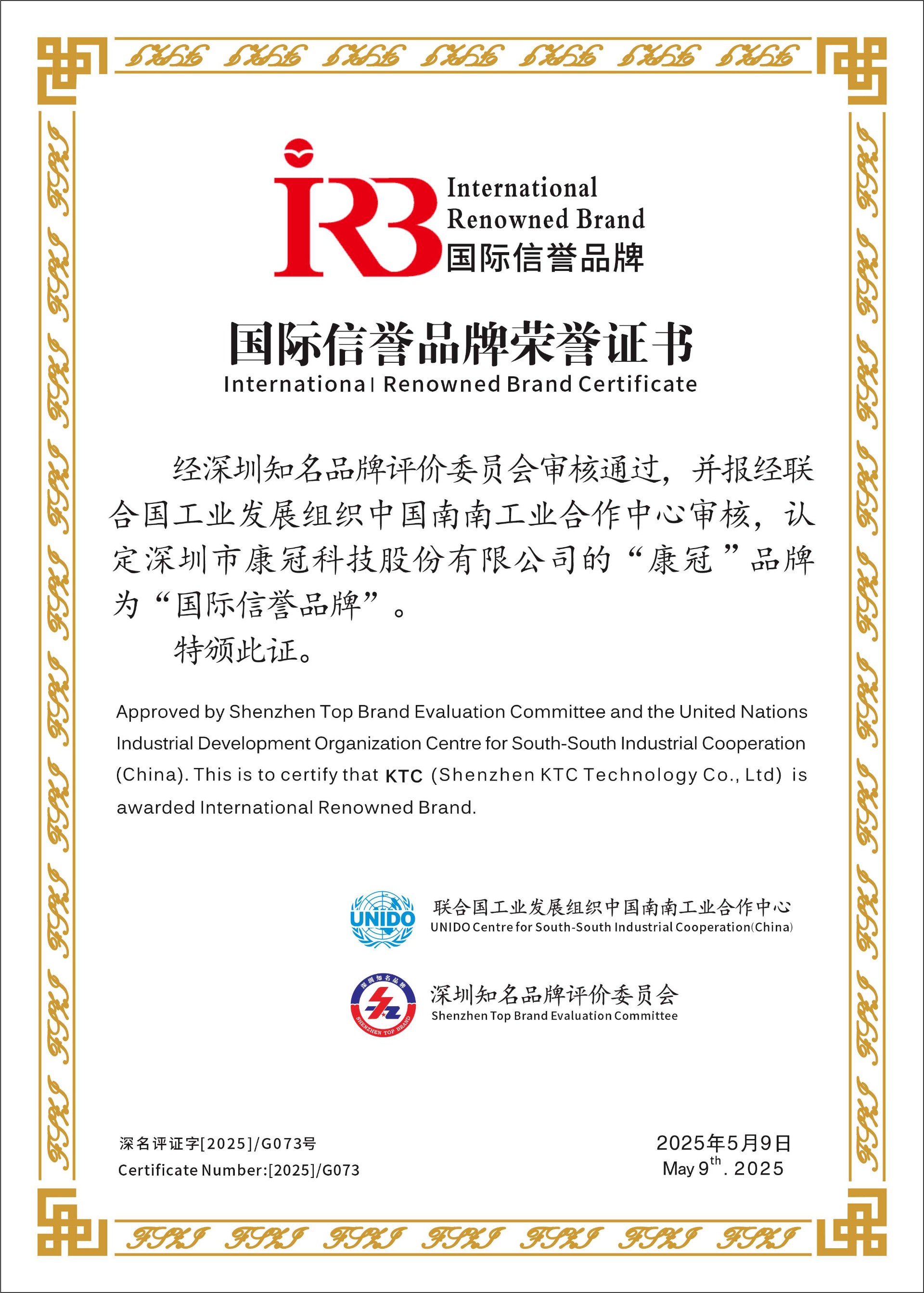 Después de una evaluación conjunta realizada por el Centro de Cooperación Industrial Sur-Sur de China de la Organización de las Naciones Unidas para el Desarrollo Industrial (ONUDI) y el Comité de Evaluación de Marcas Reconocidas de Shenzhen, la marca KTC de KTC Technology fue certificada como una "Marca Internacional de Confianza". Este respaldo destaca el reconocimiento global de la calidad de los productos de KTC Technology, la excelencia en el servicio, la competitividad internacional y las capacidades de desarrollo sostenible, impulsando su expansión en el extranjero.
