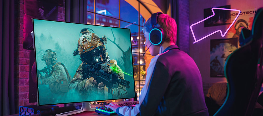 Monitor de calidad para juegos, experiencia inmersiva; hasta UHD144Hz y no granulosidad.