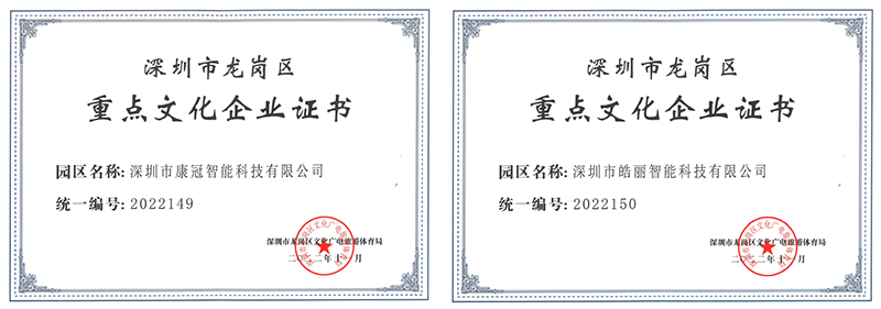 Il y a quelques jours, le Bureau de la culture, de la radio, de la télévision, du tourisme et des sports district de Longgang a organisé la qualification du pôle culturel (y compris l'industrie créative numérique) et des principales entreprises culturelles du district de Longgang. A la suite des opérations comprenant la déclaration d'entreprise, l'évaluation par des experts et la publicité sociale, 9 entreprises ont été qualifiées comme les principales entreprises culturelles du district de Longgang. Parmi elles, les deux filiales nommées KTC Intelligent et Horion ont été officiellement reconnues comme les « entreprises essentielles culturelles du district de Longgang, ville de Shenzhen ».