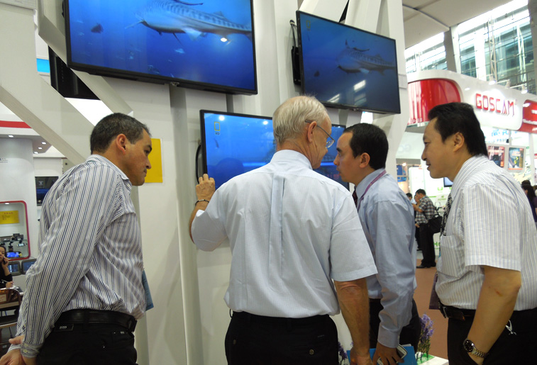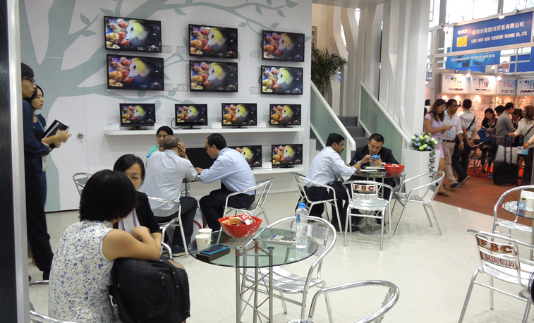 本次广交会我司展出了全系列电视产品及平板电脑新品。我司所有电视产品均为私模制造,款式多样,品质优良,在外形设计方面几经改良,采用了时尚的拉丝工艺、窄边边框与玻璃底座,外观大气,让众多专业买家爱不释手。在平板电脑方面,我司展出的8寸各系列产品以极高的性价比和美观的外形受到了客户的关注与喜爱。