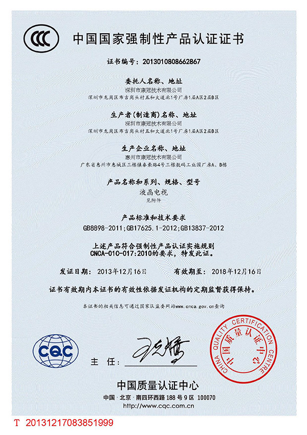 CCC全称为中国强制性认证,是中国强制执行的一种最基础的安全认证,包括产品型式实验、生产工厂监督检查两方面,是根据国家法律法规实施的对于列入强制性认证产品目录内产品的一种市场准入制度。