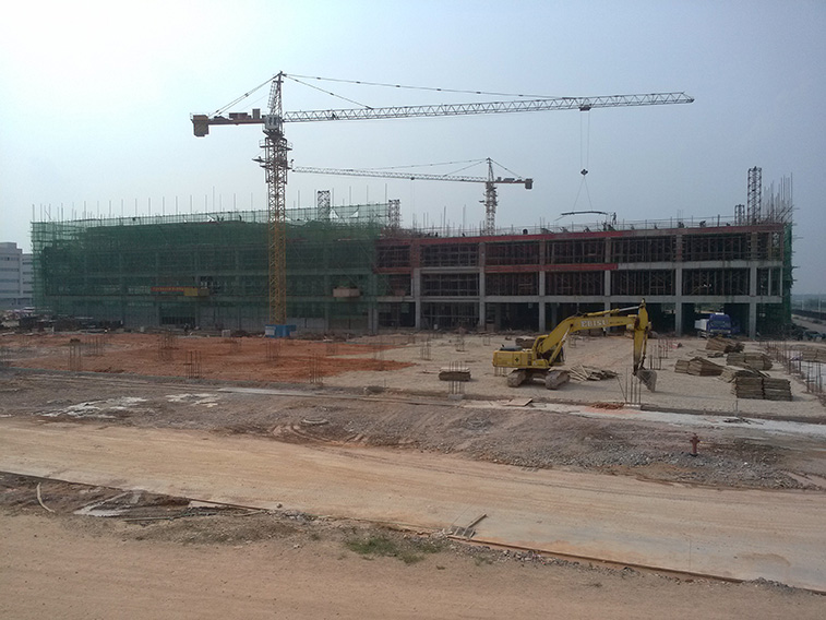 至今年6月份,6栋~9栋厂房已完成打桩,7、8栋厂房已完成四层楼板混凝土浇筑,6、9栋厂房完成±0.00以下工程。同时,宿舍楼静压桩也全面完成,目前进行承台开挖。工程预计将于明年3月份竣工。