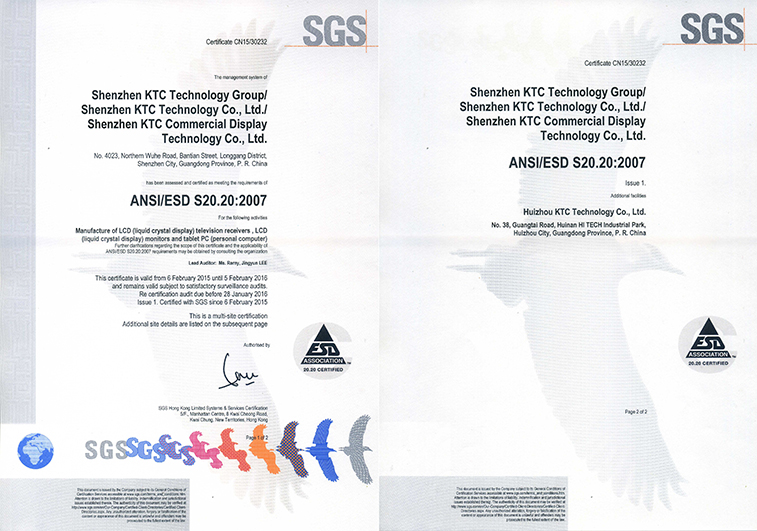 2015年2月6日,深圳银河集团(galaxy)集团、深圳市银河集团(galaxy)技术有限公司、深圳市银河集团(galaxy)商用科技有限公司、惠州市银河集团(galaxy)有限公司均顺利通过SGS公司的ESD静电防护系统认证。这将意味着我们集团各工厂在制造领域的技术水平、安全生产与产品保护规范迈入新的台阶,提升至国际领先。