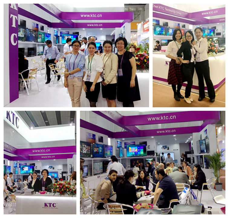 4K系列液晶电视、显示器在我司产品系列中,生产工艺日臻完美。本次重磅推出新品B1系列液晶电视,在A1的纤薄及超高清的技术基础上更加精进,B1系列采用金属装饰面框,opencell E-LED更具成本优势,线条柔美,外形飘逸,无论是性价比,还是功能上,堪称A1系列的升级版。显示器方面,本次展出的U3201S和U4391S显示器采用4K显示屏,并搭载了RTD2796主板方案,在进一步提升整体机能,突显逼真显示效果等方面可谓如虎添翼,另有展出02S系列显示器的窄边框、超薄机身一直为广大客户津津乐道,底座上下高度调节功能、逆时针90度旋屏、左右旋转各45度等实用性上的创新也成为客户欣赏的亮点。温馨雅致的展位布置,井井有条的展品陈设与简约大方的展台格局相互映衬,体现出高端大气的时代感。广交会亦是体现企业市场号召力的关键时刻,我司每年与新老客户相约于此,或是参观、或是商洽,好不热闹。