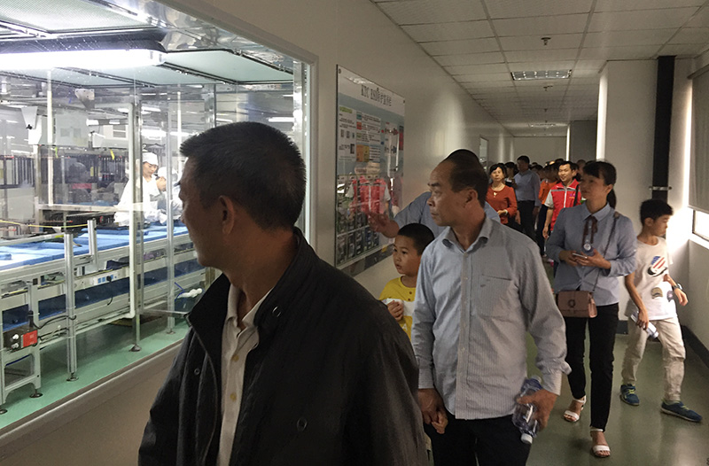 11月11日上午,银河集团(galaxy)公司坂田工厂和惠南工厂共迎来近百名员工家属,两地工厂分别安排“讲解员”、“导游”以及“安全指引员”带领员工家属们参观公司展厅、办公室区域、生产车间、园区环境、休闲娱乐设施等。参观期间,来自家属们的称赞声不绝于耳,时而赞叹公司产品的炫酷前卫,时而夸赞办公环境的端庄大气,漫步于园区大道、驻足在宿舍楼前,员工家属们无不流连忘返。