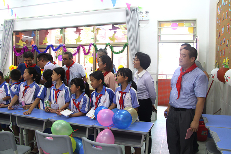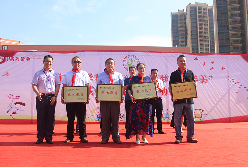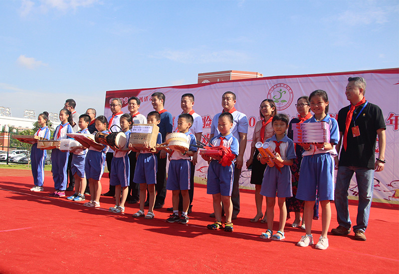 本次“六一”儿童节慰问活动在庄严的升旗仪式中启动。首先,少先队员们上台,为领导及企业代表们佩戴红领巾。随后,我司代表与管委会领导们,以及其他企业代表们一同为孩子们赠送儿童节礼物。