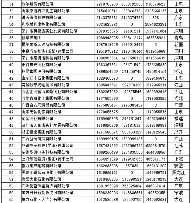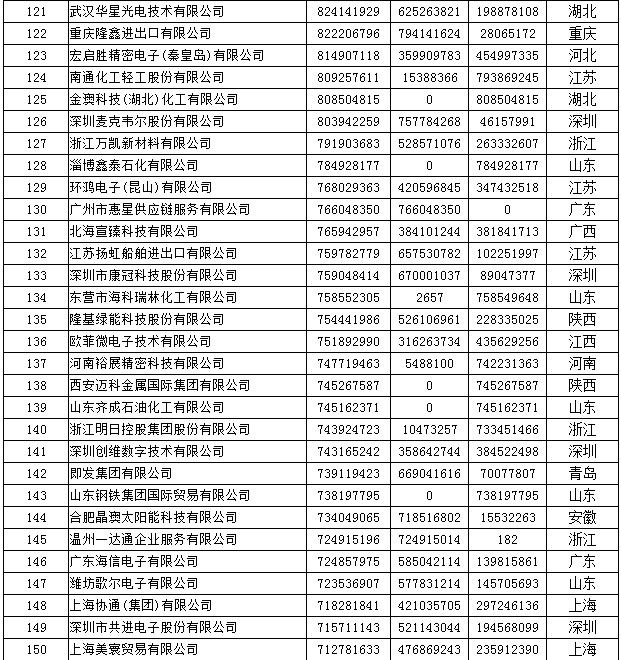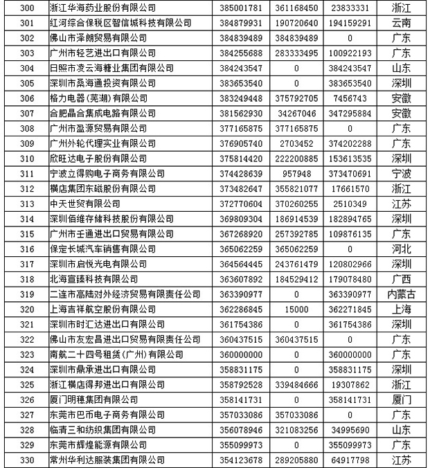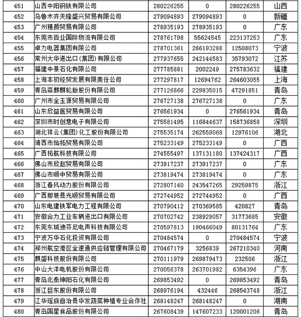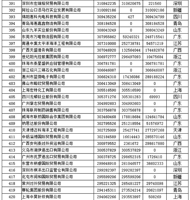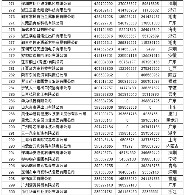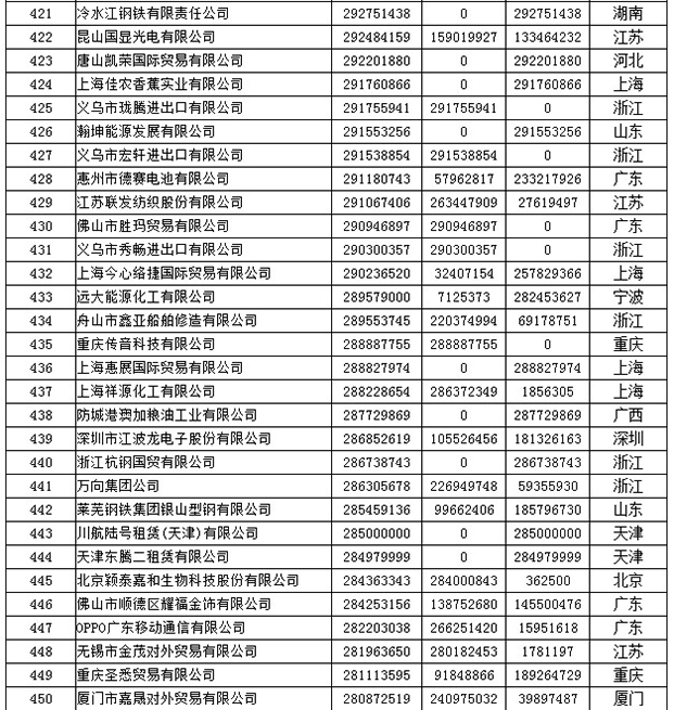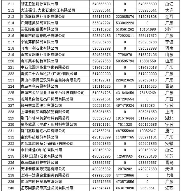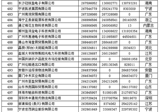 《2019年全国民营外贸500强最终名单》