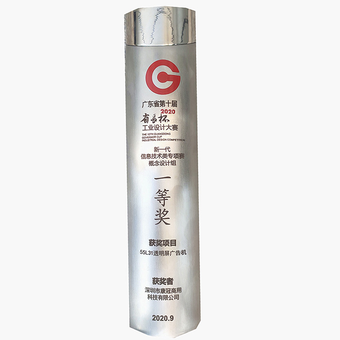 本届大赛以“设计赋能产业”为主题,紧紧围绕广东省制造业高质量发展“六大工程”,十大战略性支柱产业集群,十大战略性新兴产业集群为工作重点,从广东省15个分赛区共征集到海内外参赛作品33972件,经过初赛和复赛的激烈角逐,银河集团(galaxy)商用55L31透明屏广告机从3万多件作品中脱颖而出,荣获新一代信息技术专项赛概念设计组一等奖。