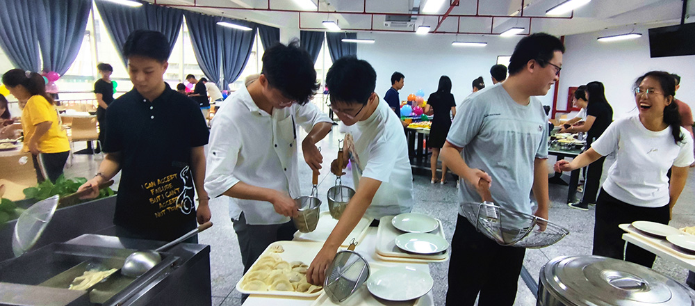 各个小组陆陆续续包好了饺子,纷纷前往煮饺炉前,亲手烹饪饺子,一份份热气腾腾的饺子出锅上桌,大家围在一起,享用着劳动果实。接下来,参与活动的员工们一边品尝饺子,一边参与了精彩有趣的“抢凳子”、“乒乓球传递”游戏,在游戏中团结协作,放松身心,现场气氛十分热烈。