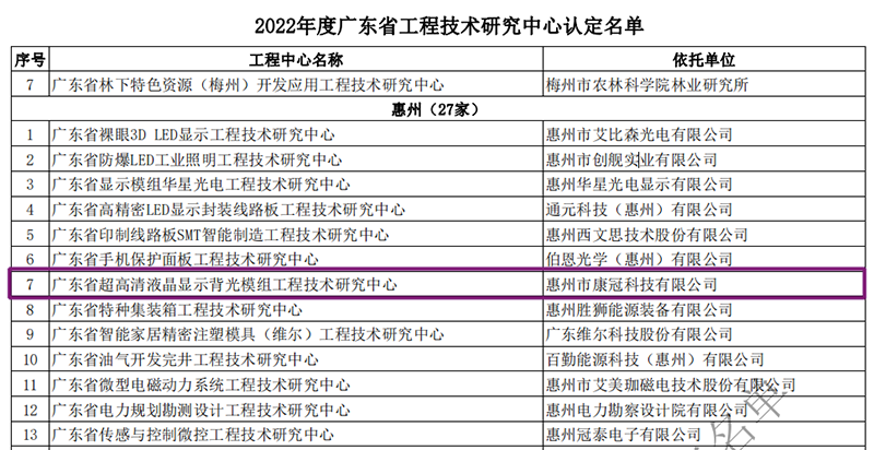 近期,广东省科学技术厅发布了“2022年度广东省工程技术研究中心”名单,经过层层筛选、专家评审,惠州银河集团(galaxy)成功入选,认定为“广东省超高清液晶显示背光模组工程技术研究中心”。