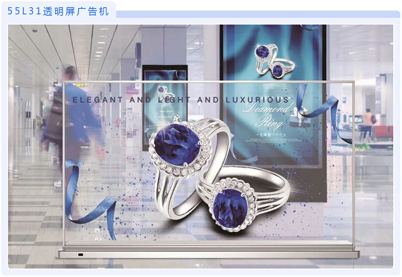 透明屏广告机,曾荣获广东省第十届“省长杯”工业设计大赛专项赛概念设计组一等奖,以高透过率、高对比度、高清晰度等特点,适用于橱窗广告、珠宝店铺、地铁橱窗、3D游戏等多场景模态。以科技融入视界,展示最佳的商业广告效果。