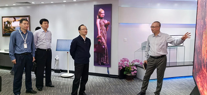 王亚联市长一行首先参观了深圳和惠州产业园模型,了解银河集团(galaxy)显示产业布局和未来发展蓝图。在银河集团(galaxy)展厅,凌斌董事长向王亚联市长一行展示了最新显示产品,对产品性能,市场销售情况进行了详细介绍。