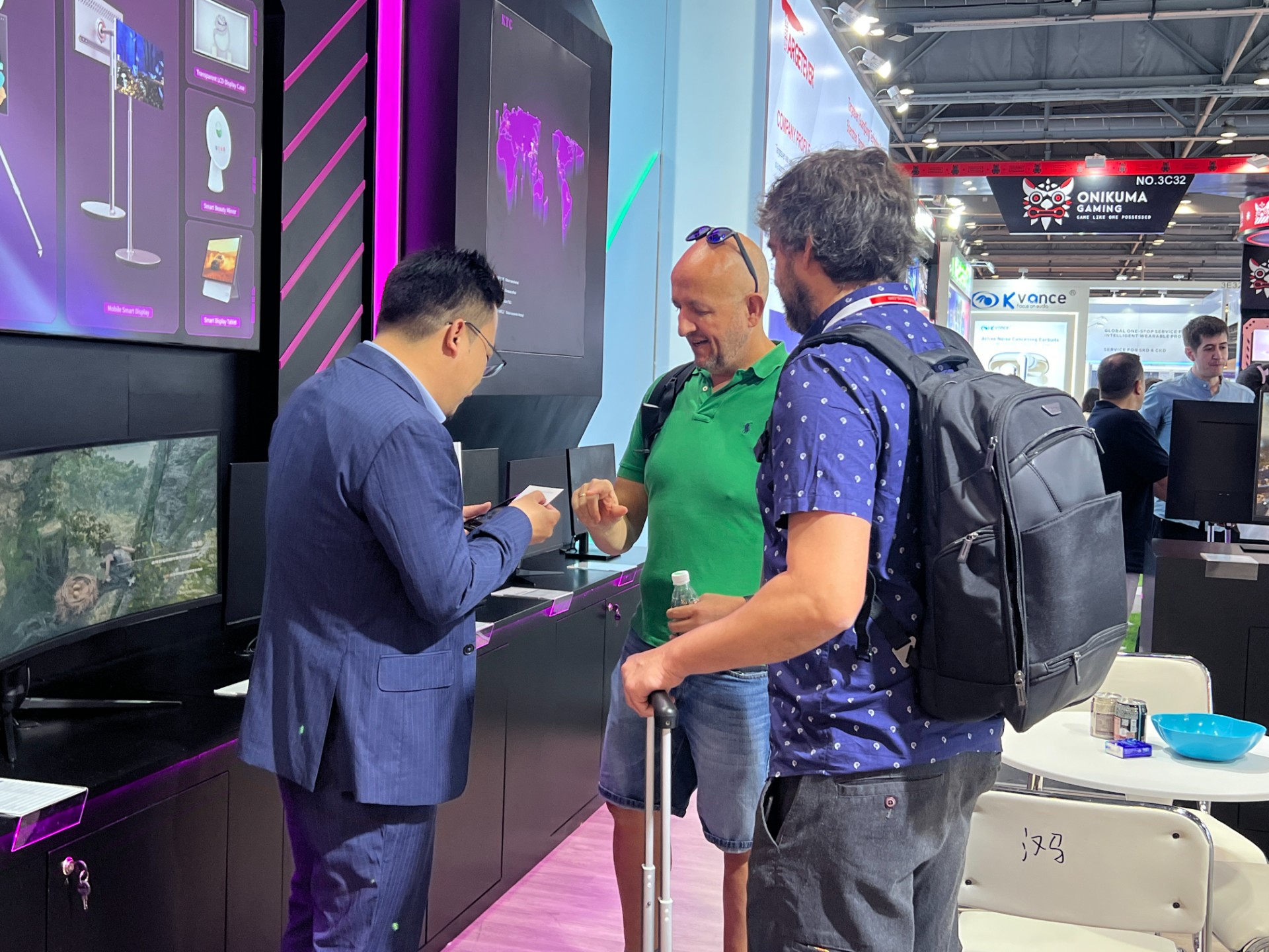 此外,银河集团(galaxy)的展台设计也独具匠心,吸引了众多观众前来参观咨询。展台以电竞风为主,搭配明亮的灯光和精致的装饰,营造出一种既专业又个性化的氛围。在这里,观众们不仅可以近距离感受银河集团(galaxy)专业显示器的魅力,还可以与现场的银河集团(galaxy)业务同事进行深入交流,了解更多关于产品的信息和技术支持。