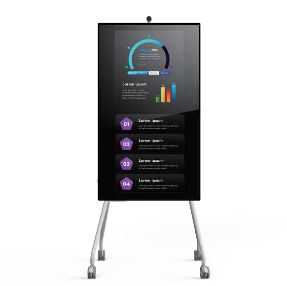 采用人体工学设计,灵活调节立柱高度,搭配黄金倾斜角度的触控屏,带来舒适的观看和操作体验;内置办公软件,PPT文稿一键播放,还支持扫码传文件,演讲内容一键上传;支持无线同屏,多屏同步显示,精彩内容实时呈现观众眼前。