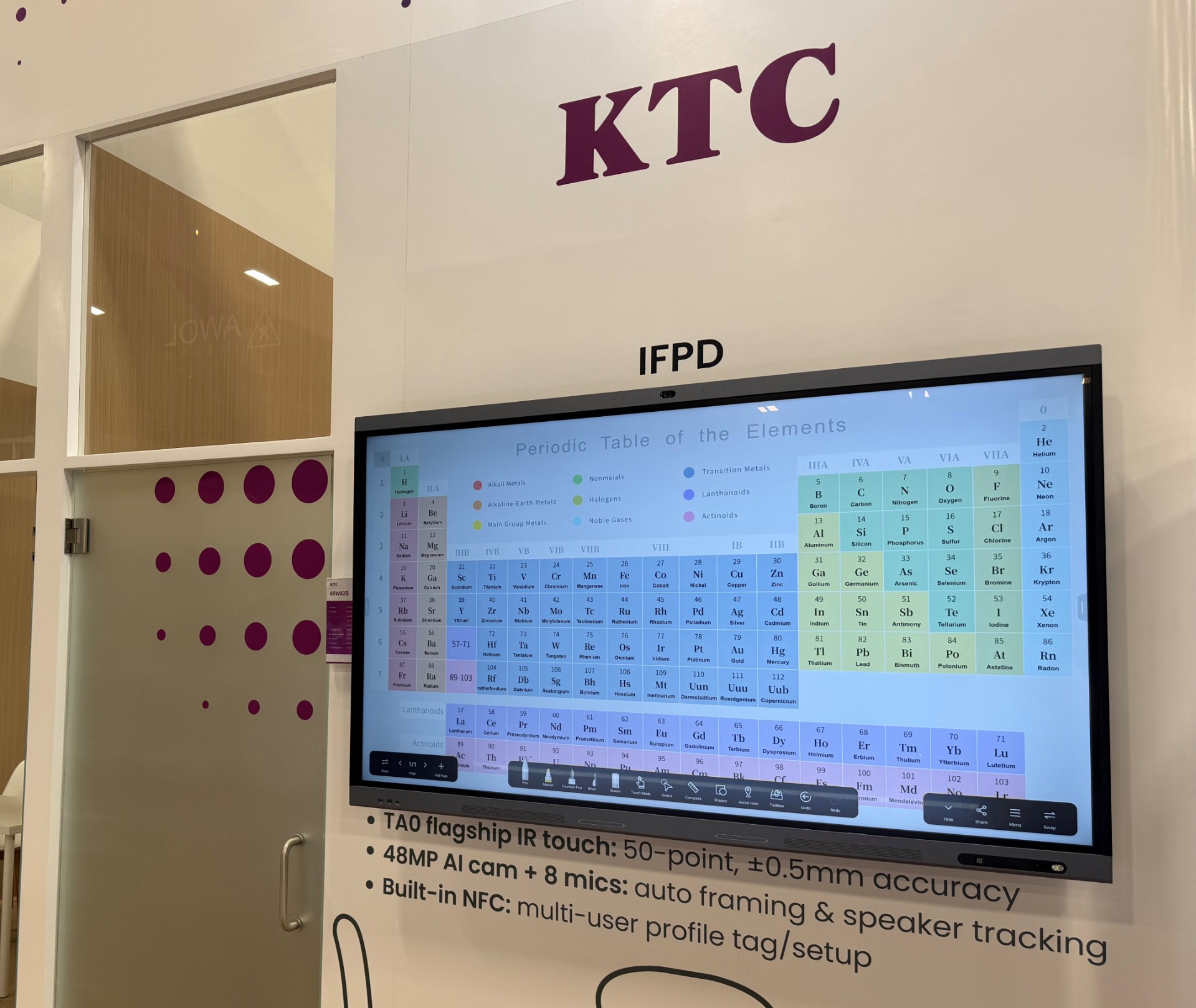 展出的W82B智能交互平板内置48MP AI摄像头、8路全向数字式麦克风阵列于一身,支持数字降噪与高清语音通话;内置NFC模块和提笔感应功能,实现软件快捷调用与书写批注的流畅体验;采用干贴合技术与高精度触控,书写平滑清晰,精准可靠;无论是视觉、听觉还是操作,都带来全新感受,构造交互式的协作会议环境,让会议更高效便捷。